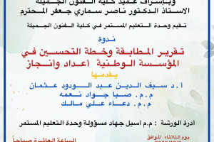 قراءة المزيدالى الطلبة المتقدمين للدراسات العليا في كلية الفنون الجميلة/جامعة البصرة.. (الماجستير و الدكتوراه ) ، نود اعلامكم بان وحدة الدراسات العليا في الكلية تستقبل ارسال ملفات الطلبة المتقدمين الكترونيا على ا
