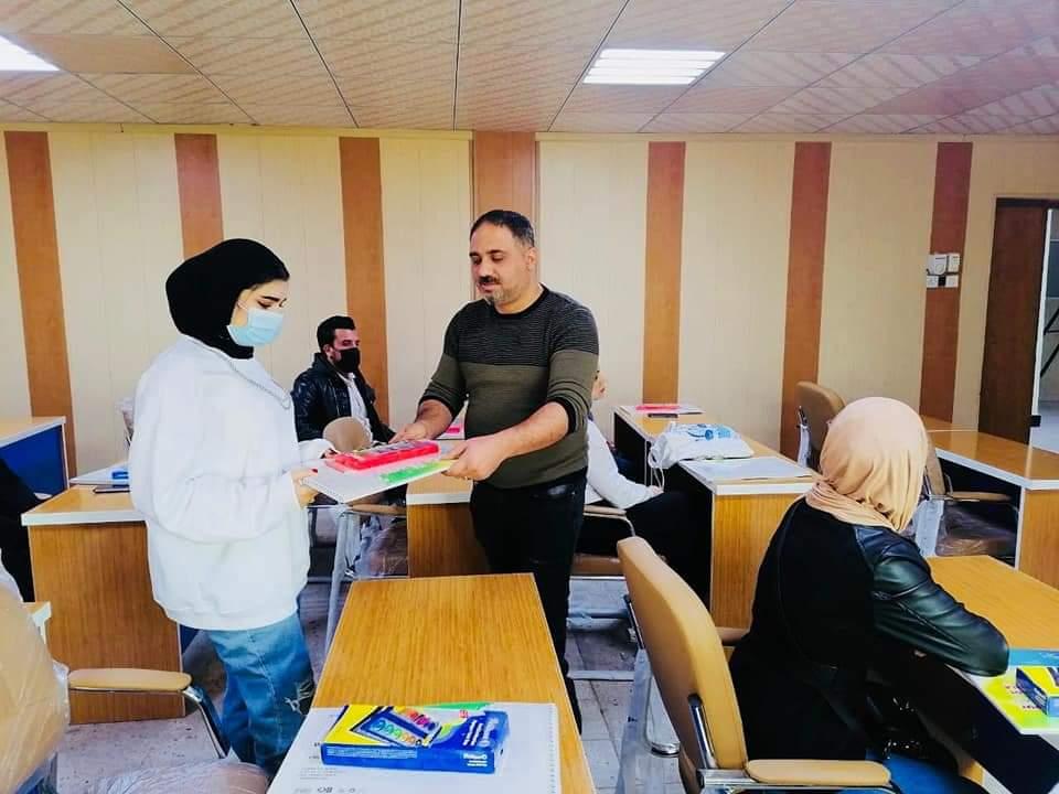 ضمن جولاته التفقدية اليومية لسير التدريسيات العملية والتطبيقية في الاقسام العلمية قدم عميد كلية الفنون الجميلة الدكتور علي عبدالله الكناني (حقيبة التدريسي ) التي تحتوي بعض المستلزمات والقرطاسية التي يحتاجها التدريسي .