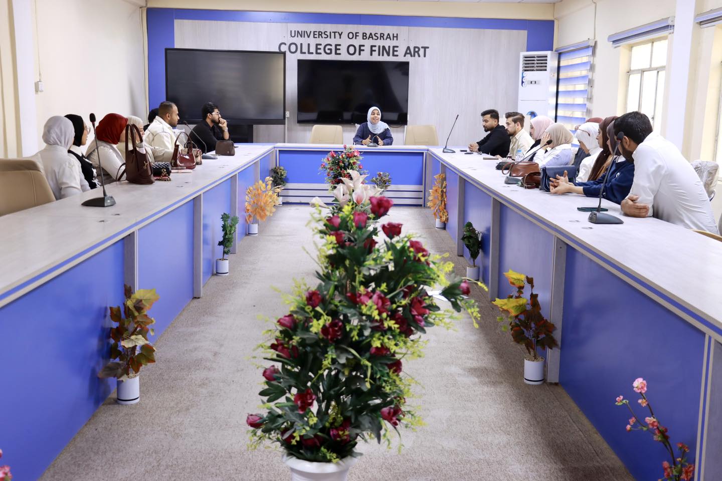 برعاية رئيس جامعة البصرة الأستاذ الدكتور مهند جواد الأسدي المحترم، وبإشراف عميد كلية الفنون الجميلة الأستاذ الدكتور ناصر سماري جعفر المحترم، نظّمت وحدة الإرشاد النفسي الجامعي في كلية الفنون الجميلة جلسة حوارية توعوية حملت عنوان "أنا وفني… لحث الطلبة على الالتزام والمسؤولية في أداء الواجبات".