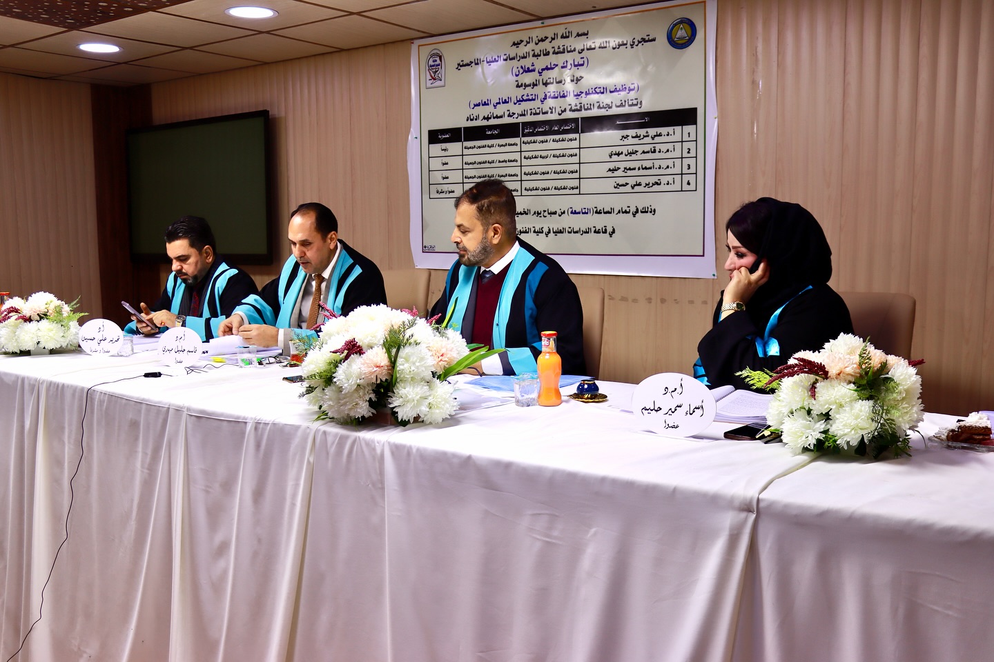 بحثت رسالة ماجستير في كلية الفنون الجميلة بجامعة البصرة "توظيف التكنلوجيا في التشكيل العالمي المعاصر".