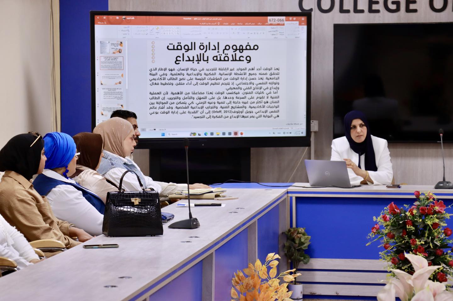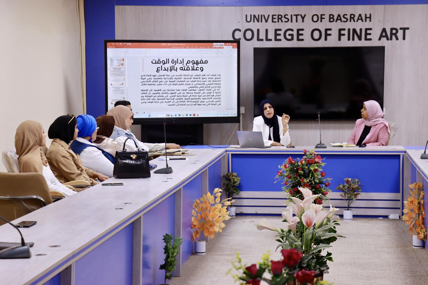 برعاية رئيس جامعة البصرة الأستاذ الدكتور مهند جواد الأسدي المحترم وبإشراف عميد كلية الفنون الجميلة الأستاذ الدكتور ناصر سماري جعفر المحترم. نظمت كلية الفنون الجميلة بجامعة البصرة وحدة الارشاد التربوي والنفسي ندوة حضورية بعنوان إدارة الوقت والإبداع.